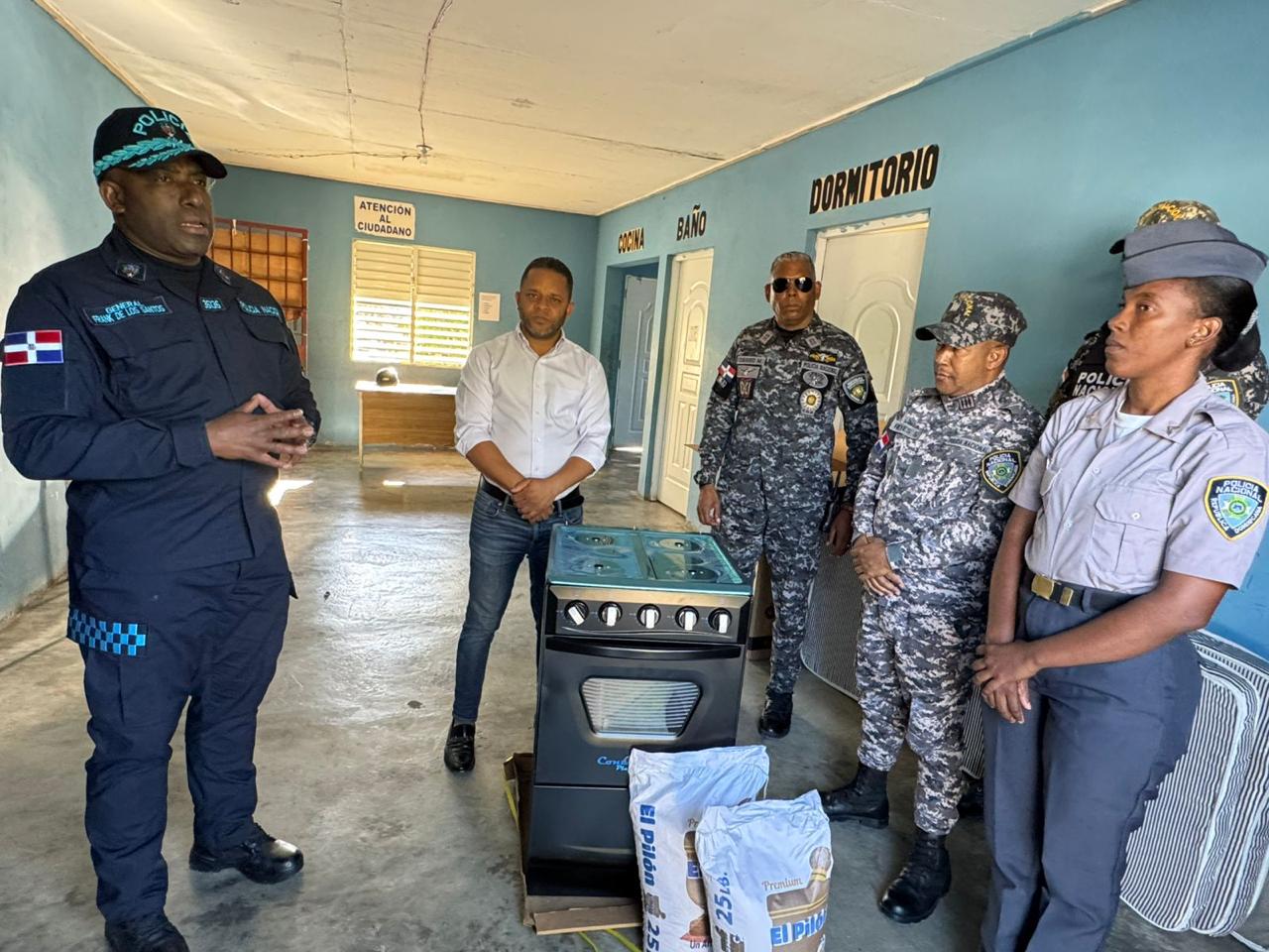 En esta ocasión, el alcalde entregó una estufa y varios colchones, artículos esenciales que contribuirán a mejorar las condiciones en que operan y descansan los miembros de la Policía Nacional destacados en Jorgillo.